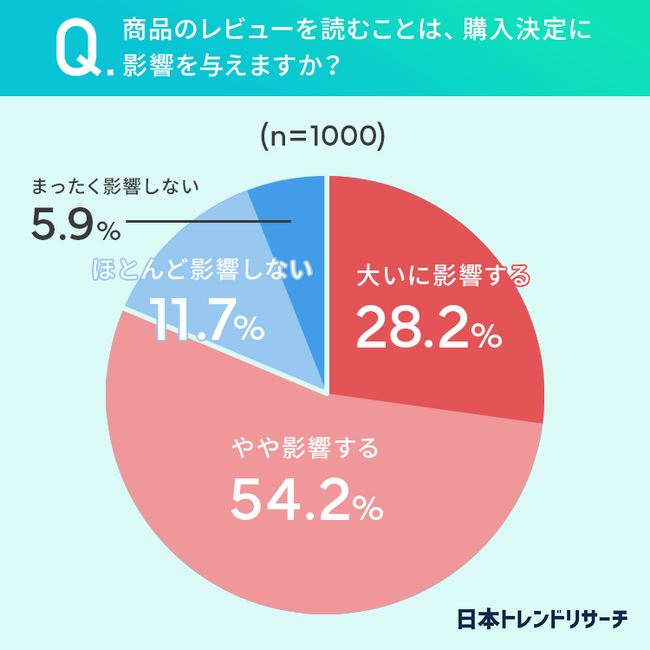 合計で82.4%の方が「商品のレビューを読むことは、購入決定に影響を与える」と回答しています。