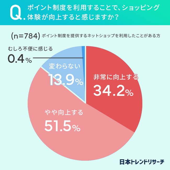 ポイント制度を利用することで、ショッピング体験が向上すると感じるか聞いてみました。