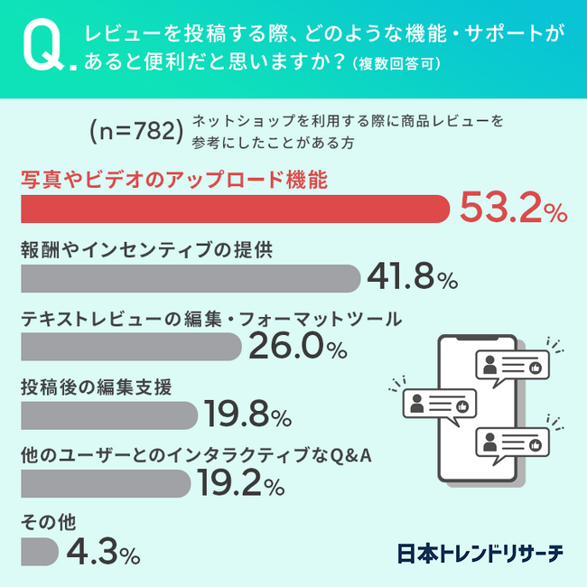 レビューを投稿する際、どのような機能・サポートがあると便利だと思うかもあわせて聞いてみました。