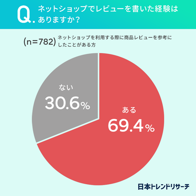 69.4%の方が、ネットショップでレビューを書いた経験が「ある」と回答しています。