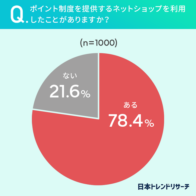 78.4%と8割近くの方がポイント制度を提供するネットショップを利用したことが「ある」と回答しています。