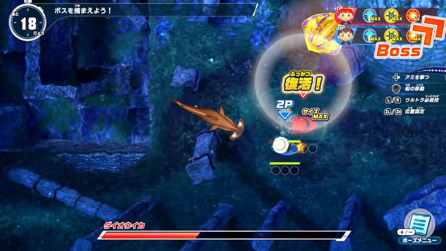 最大2人での協力プレイも可能です。2人プレイの場合、どちらかが戦闘不能になっても復活ができるので、力を合わせて強力なボスを捕獲しましょう!