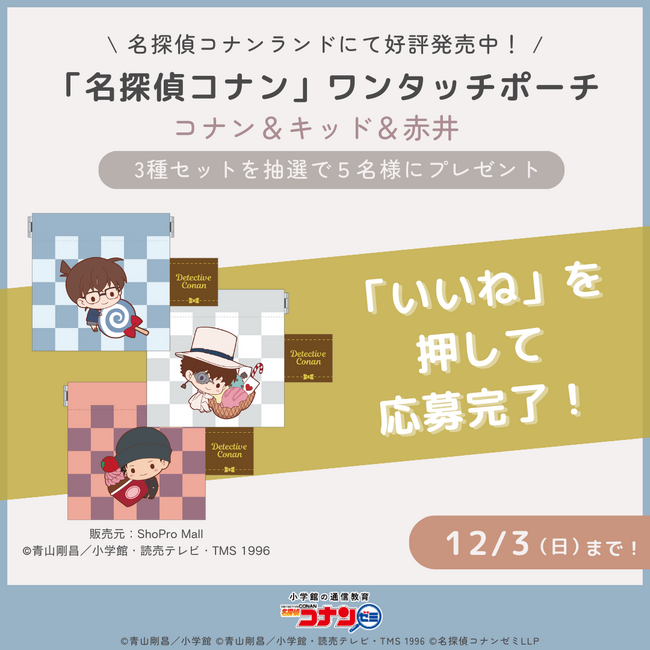 株式会社小学館集英社プロダクションが運営する『小学館の通信教育 名探偵コナンゼミ』は、現在開催中のイベント「名探偵コナンランド」にて好評発売中のグッズが当たるキャンペーンを、公式Instagram・X(旧Twitter)にて開催します。