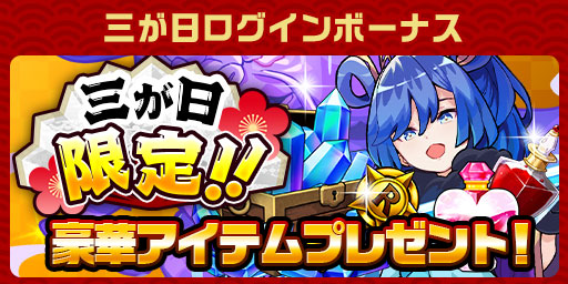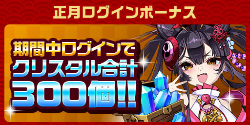 ※1月1日から1月3日まで毎日クリスタルが20個ずつ獲得できます