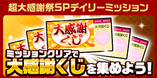 大感謝くじは持っているだけでクリスタルが最大で3,000個獲得できるチャンスとなっておりますので、是非ミッションに参加して大感謝くじを集めましょう。