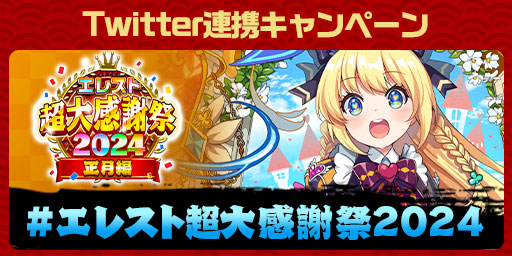 特設サイトと連携してTwitterでハッシュタグ「#エレスト超大感謝祭2024」を付けて、ツイートしましょう。