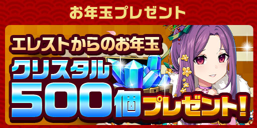 期間中にログインした方に、クリスタル500個をプレゼントいたします。