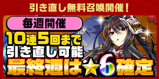 10連を5回まで無料で引き直せる召喚を毎週開催いたします。