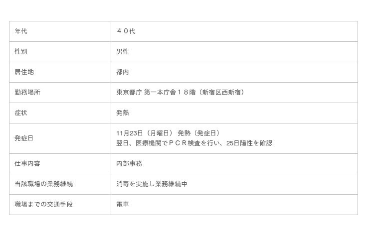東京都生活文化局に所属する職員1名が、新型コロナウイルスに感染したことが確認されたので、以下のとおり、お知らせします。