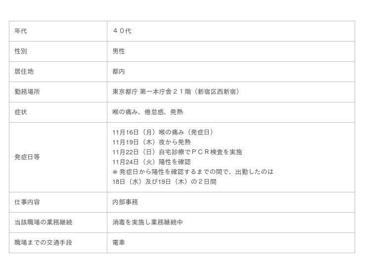東京都産業労働局に所属する職員1名が、新型コロナウイルスに感染したことが確認されたので、以下のとおり、お知らせします。