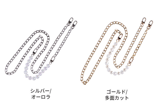 ・ショルダーチェーンストラップ:シルバー/オーロラ、ゴールド/多面カット