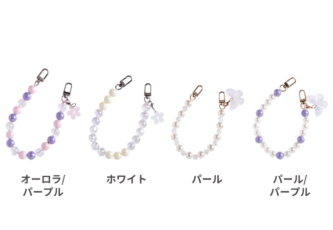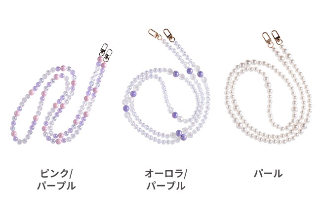 ・カラー展開:・ショルダービーズストラップ:ピンク/パープル、オーロラ/パープル、パール、パール/ゴールド、パール/シルバー