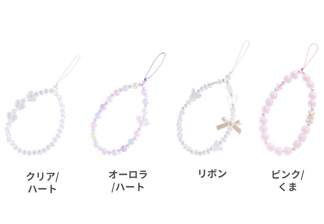 ・カラー展開:クリア/ハート、オーロラ/ハート、リボン、ピンク/くま