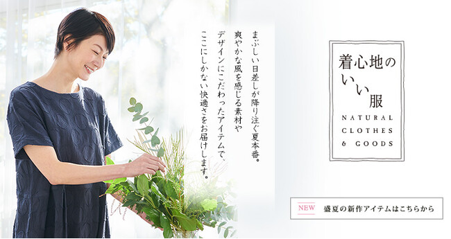 天然素材・日本製にこだわった女性ファッション通販サイト【着心地のいい服】に、2023年盛夏の新作アイテムが勢ぞろいしました。