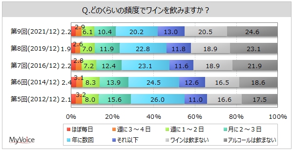 マイボイスコム株式会社(東京都千代田区、代表取締役社長:高井和久)は、インターネット調査を中心に提供している伊藤忠グループのリサーチ会社です。この度、9回目となる『ワイン』に関するインターネット調査を2021年12月1日〜5日に実施し、9,937件の回答を集めました。調査結果をお知らせします。