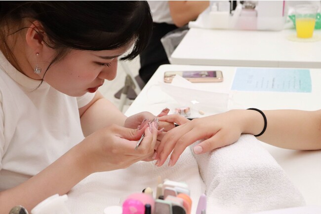 ネイルを担当した学生は、「想像以上に楽しく施術ができた。またやってみたい。」や、「中学生の頃からネイリストになりたいと思っていた。経験を重ねて、将来は自分のお店を持ちたい。」と話をしていました。