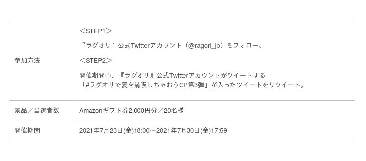 ▼「『ラグオリ』で夏を満喫しちゃおう!キャンペーン第3弾」概要
