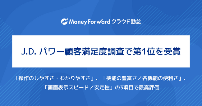 株式会社マネーフォワードが提供する勤怠管理システム『マネーフォワード クラウド勤怠』が、株式会社ジェイ・ディー・パワー ジャパンによる「2023年勤怠管理クラウド顧客満足度調査」において、総合満足度第1位を受賞しました。