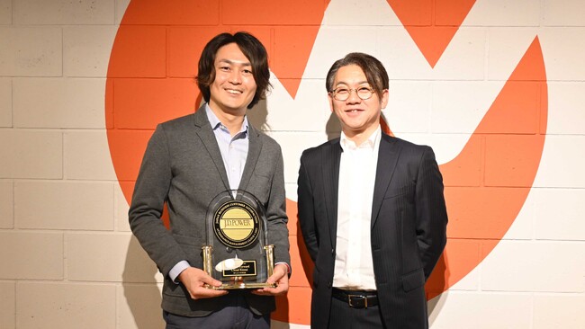 11月21日、マネーフォワード本社オフィスにジェイ・ディー・パワー ジャパン 常務執行役員の梅澤様が来訪し、評価結果に対するご祝辞をいただくと共に、当社取締役グループ執行役員の竹田と、マネーフォワードビジネスカンパニー HRソリューション本部 副本部長の有働にトロフィーが授与されました。