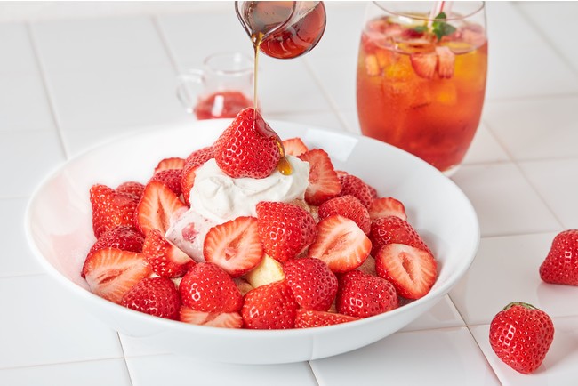 別添えのメープルシロップ&生クリームのこれまでにありそうでなかった組み合わせが、シンプルながらも奥深さを演出し、あまおうの美味しさを最大限に引き出します。