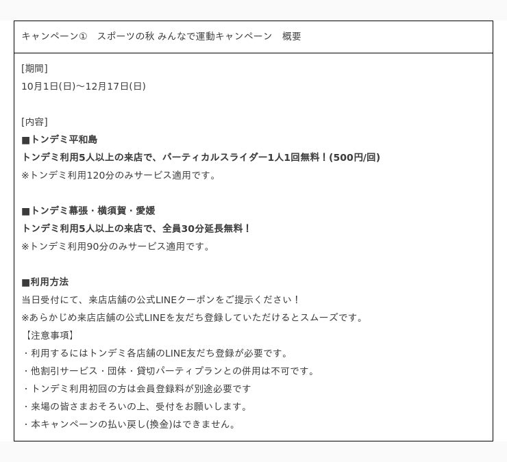 秋はみんなで体を動かして楽しもう! 「スポーツの秋 みんなで運動キャンペーン」「ごほうび割」開始! 全国のトンデミにて 10月1日(日)より