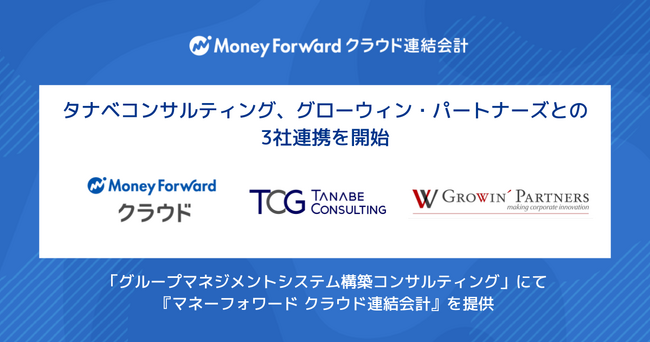 株式会社マネーフォワードは、株式会社タナベコンサルティング、タナベコンサルティンググループのグローウィン・パートナーズ株式会社と、グループ経営の体制構築支援における連携を開始しました。本連携により、タナベコンサルティングとグローウィン・パートナーズが提供する「グループマネジメントシステム構築コンサルティング」のソリューションとして、『マネーフォワード クラウド連結会計』の提供を行います。