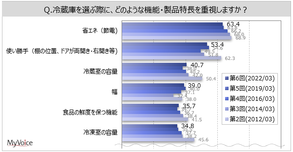 冷蔵庫選定時に重視する機能・製品特長