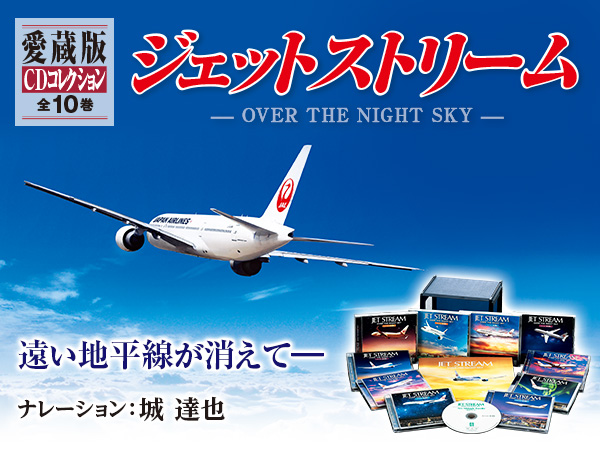 『ジェットストリーム OVER THE NIGHT SKY CD全10巻』は、1967年から放送を開始し、多くのリスナーを魅了してきた日本航空提供のFMラジオ番組「ジェットストリーム」より、初代パーソナリティー・城 達也氏のナレーションと珠玉の名曲170曲を集大成した、愛蔵版CDコレクションです。