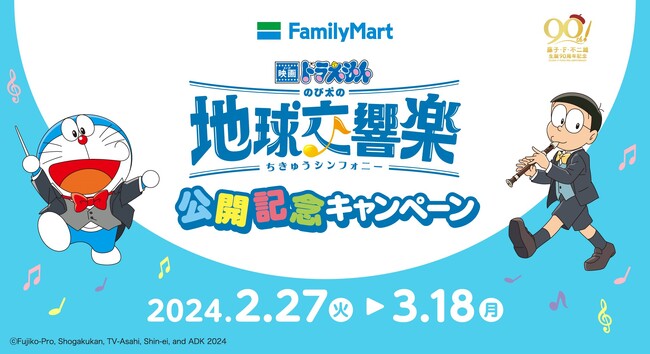 株式会社ファミリーマート(本社:東京都港区、代表取締役社長:細見研介)は、継続して取り組んでいる5つのキーワードの1つである「『あなた』のうれしい」の一環として、「『映画ドラえもん のび太の地球交響楽(ちきゅうシンフォニー)』公開記念キャンペーン」を2024年2月27日(火)から、全国のファミリーマート約16,300店舗にて実施いたします。
