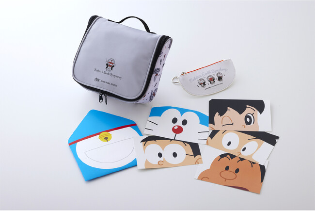 各宿泊とともに、「ドラえもん」トラベルポーチ、コインケース、ポストカードフォトプロップス(5種)が入ったお持ち帰りグッズをプレゼント。