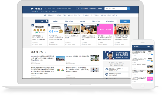 PR TIMES(読み:ピーアールタイムズ)は、「行動者発の情報が、人の心を揺さぶる時代へ」をミッションに掲げ、企業とメディア、そして生活者をニュースでつなぐインターネットサービス「PR TIMES」を2007年4月より運営しています。報道機関向けの発表資料(プレスリリース)をメディア記者向けに配信するとともに、「PR TIMES」およびパートナーメディアに掲載し、生活者にも閲覧・シェアされています。利用企業数は2022年2月に6万5000社を突破、国内上場企業50%超に利用いただいています。情報収集のため会員登録いただくメディア記者2万3000人超、サイトアクセス数は月間5800万PVを突破、配信プレスリリース件数は累計100万件を超えています。全国紙WEBサイト等含むパートナーメディア200媒体以上にコンテンツを掲載しています。