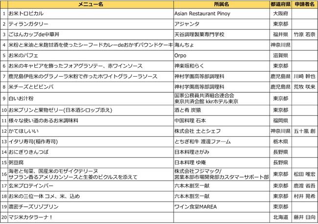 本グランプリには、全国から「米」ならではの魅力あふれるアイデアの詰まった応募作品159点が集まり、トレンド性、新規性/将来性、実現可能性など、3つの観点から厳選な審査が行われ、その結果、入賞4作品、特別審査員賞1作品のほか、ノミネート20作品が選出され、受賞作品合計24作品(※)が発表されました。