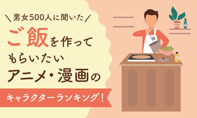 そこで今回は八面六臂株式会社と共同で、全国の男女500名を対象に「ご飯を作ってもらいたいアニメや漫画のキャラ」に関するアンケートをおこないました。