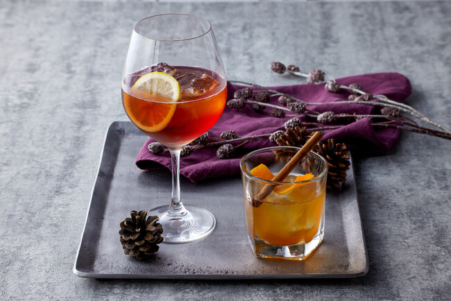 秋の深まりと共に葉が色づく様を表現したカクテルで、スモーキーなバーボンに芳醇なカルヴァドスを合わせた重厚感のある味わいです。バーボン、カルヴァドス、シナモンの一体感をお楽しみください。