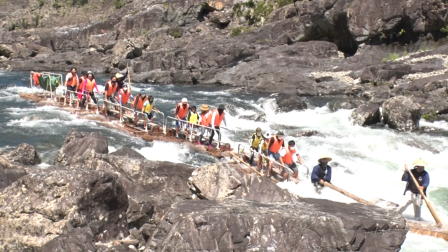 自然そのものの急流を、かつて木材を運んでいた筏を改良して急流を下るもの。