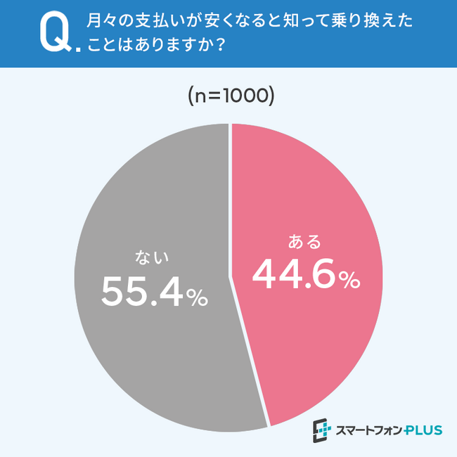 続いて、月々の支払いが安くなると知って乗り換えたことはあるか聞いてみました。