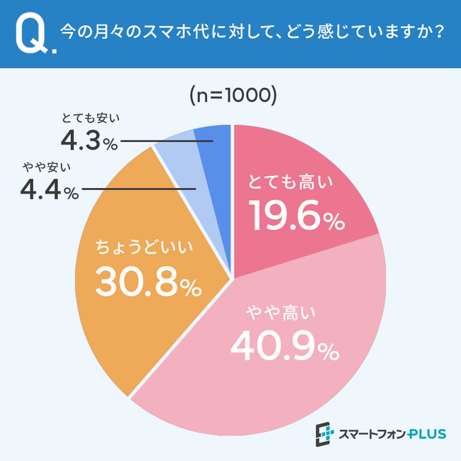 さらに今の月々のスマホ代に対して、どう感じているのかもあわせて聞いてみました。