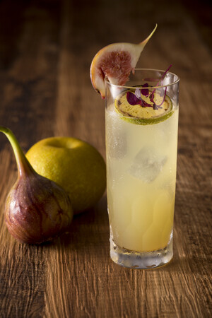 梨のハイボール「穂乃梨〜honori〜」は、甘く華やかでバランスの良い香味と豊かで滑らかな風味のスコッチウイスキー「バランタイン ファイネスト」を使用した大人のハイボール。すりおろした梨とかぼす果汁を加え、梨のほのかな香りや食感が愉めます。少しあぶったかぼすやイチジクを添えて見た目からも秋を感じられる一杯です。
