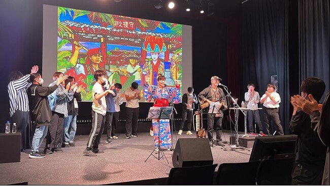 「とにかく発信し続けてほしい。自分はコロナ禍になってから YouTube 配信を始めたが、パリ三線クラブに所属しているフランス人の方と交流できたり、3 年目にしてマレーシアで日本語学校の先生をしている方から公演を依頼され今年クアラルンプールに行ってきた。発信し続けたことで様々な経験をすることができている。そしてやりたいことは声に出していくことが大切。」と語っていました。