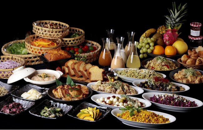 シェフがライブキッチンで作るスタンドクッキングでは「あつあつオムレツ」や、オープン当時から人気の「鶏肉の西京焼き」を用意。また、日替わりで用意するメニューもあり連泊のお客様にも愉しんでもらえる工夫をしています。その他和食はもちろん、朝食にかかせない卵料理、ベーコンなどの洋食やサラダ、パン、デザートなど定番料理や、和洋多彩な料理約70種類を堪能できます。