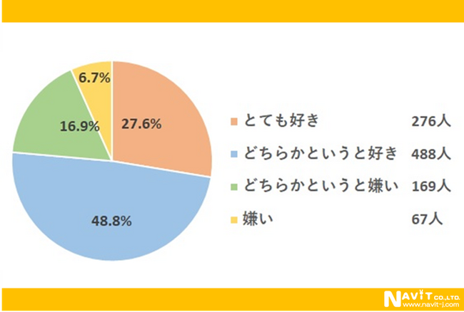 炭酸飲料が好きですか?との問いに「とても好き」276人、「どちらかというと好き」488人と答えた人の合計は764人。全体の4分の3を超えました。
