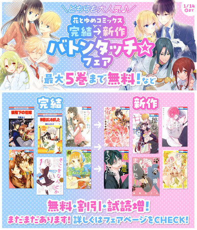 「\どちらも大人気♪/花とゆめコミックス完結→新作バトンタッチ☆フェア」 白泉社e-net!ほか主要電子書店にて開催!!