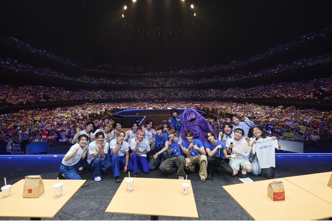 ラストは各々フェスオリジナルグッズを身につけ、超特急も含めてステージに全員集合。記念撮影を行なった後、超特急・RYOGAが「片足だけでも超特急に乗車してくれた方々は『?いマックの日』に参加していただけたらと思います。そして、スマイルは無料でございます。どうか毎日にスマイルを!」、RIIZE・SHOTAROが「『?いマックの日』、皆さんで盛り上げていきましょう! 今日はありがとうございました」とメッセー ジを送り、フェスを締めくくった。