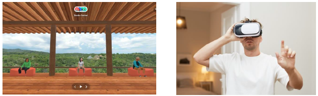 ▲メタバース上に構築された「禅坊 靖寧」 ▲VR ゴーグルの装着で没入感を高める
