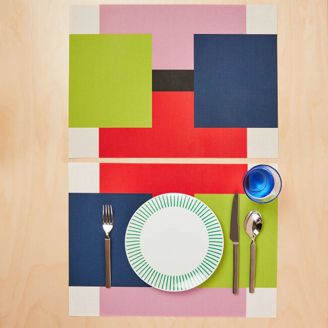 MoMA Exclusive:テーブルコーディネートを一変させたデザイナー、Sandy Chilewich(サンディ・チルウィッチ)がデザインしたプレースマット。形、大きさ、位置、順番が色の知覚にどのように影響するかというChilewichの継続的な探求の一環としてデザインされたこのプレースマットには、大胆で独特な色合いの四角形が重なってプリントされています。