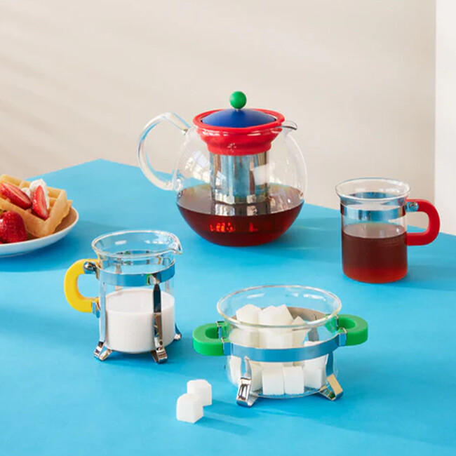 MoMA Exclusive:ホウケイ酸ガラスのクリーマーとシュガーボールは、高級感のあるステンレスフレーム仕様でダイニングに美しいデザインと彩りを与えます。※11月発売