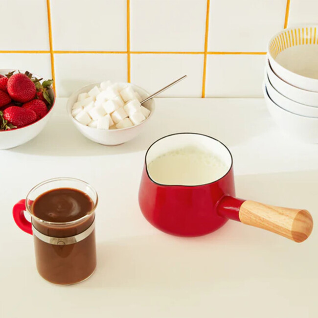 ビビットなレッドが印象的な、小ぶりで使い勝手の良いミルクパン。使いやすさを追求した木製のハンドルは、握り心地も抜群です。これからの季節、チョコレートフォンデュ作りにもおすすめです。https://www.momastore.jp/shop/g/g0497608310219/