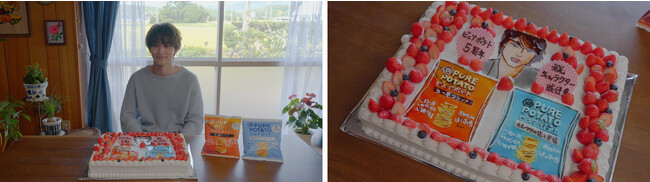 ピュアポテト5周年記念と横浜流星さんのCMキャラクター就任をお祝いするサプライズケーキに感動!「記念すべき年にCMに出演でき嬉しい」と笑顔