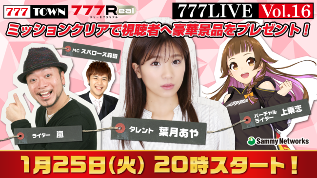 葉月あや・嵐がゲスト出演!1月25日(火)20時から「777LIVE Vol.16」生放送