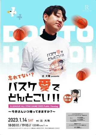 MCに俳優や声優、ナレーターとして活躍する辻大地さんを迎え、「バスケ愛でどんとこい!!番外編」としてPVを盛り上げます。